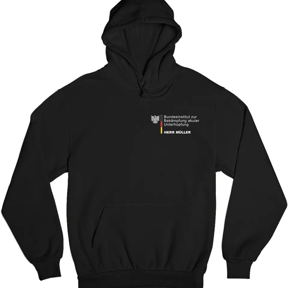 Jedes Bundesinstitut T-Shirt ist natürlich personalisierbar, sodass du deinen Namen auf dem offiziellen Emblem tragen kannst. Perfekt für jede Gelegenheit – ob beim lockeren Feierabendbier, dem geselligen Weintasting oder dem Aperitif mit Freunden. Und wenn du mal wieder „pfuschen“ musst, tust du es stilvoll und offiziell anerkannt. Für den besonders ernsten Fall der akuten Unterhopfung bist du mit unserem neuesten Shirt bestens gerüstet.