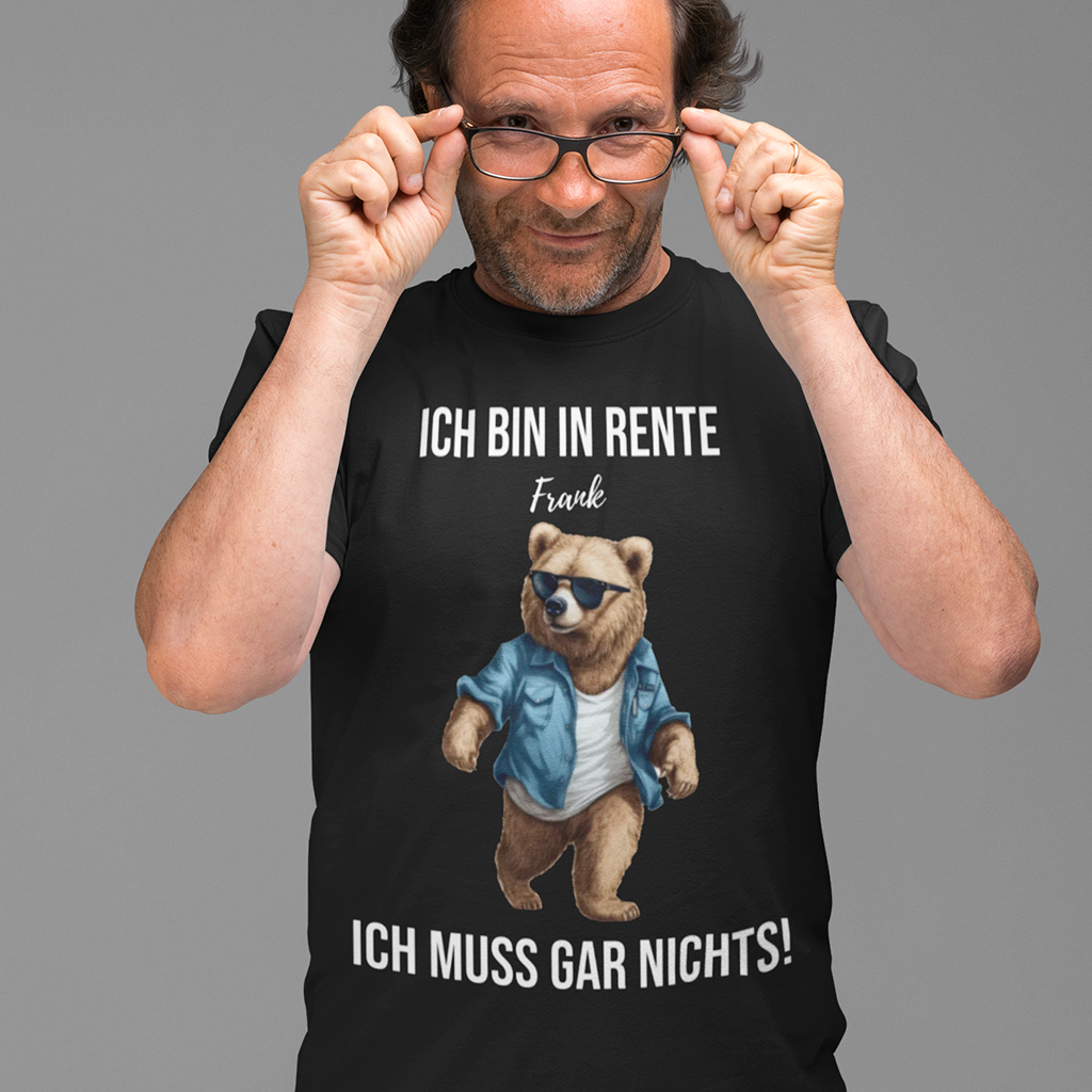 Zeig deinen freien Geist und Lebensstil im Ruhestand mit unserem offiziellen "Ich bin in Rente - Ich muss gar nichts" T-Shirt oder Hoodie, personalisierbar mit deinem Namen und deinem Lieblings-Spruch oder -Motiv. Unterstreiche deinen Charakter im wohlverdienten Ruhestand und wähle aus einer Vielzahl von Designs das perfekte für dich aus. Ideal, um deinem neuen Lebensabschnitt den passenden Ausdruck zu verleihen!