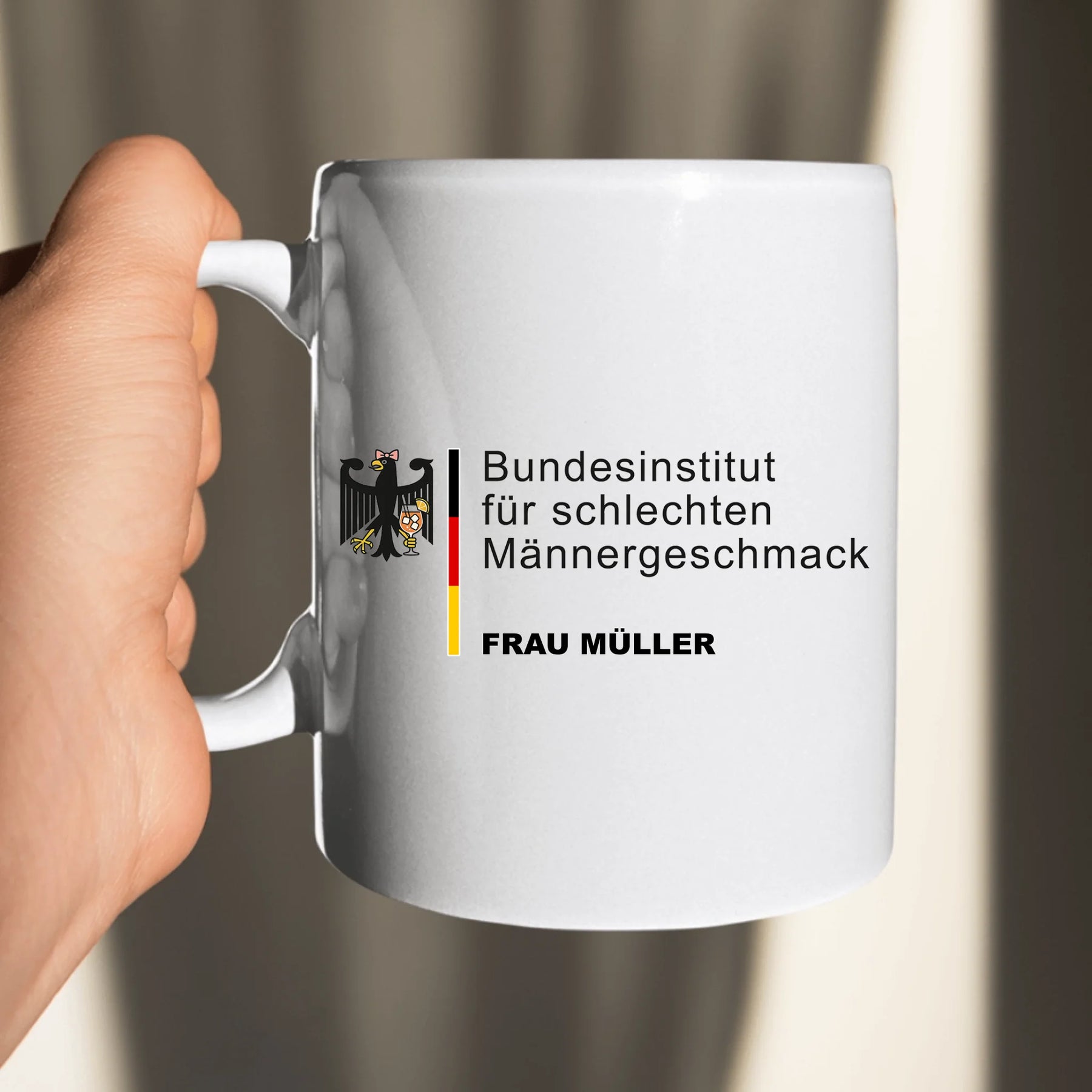 Bundesinstitut für schlechten Männergeschmack Geschenk Tasse - Name personalisiert