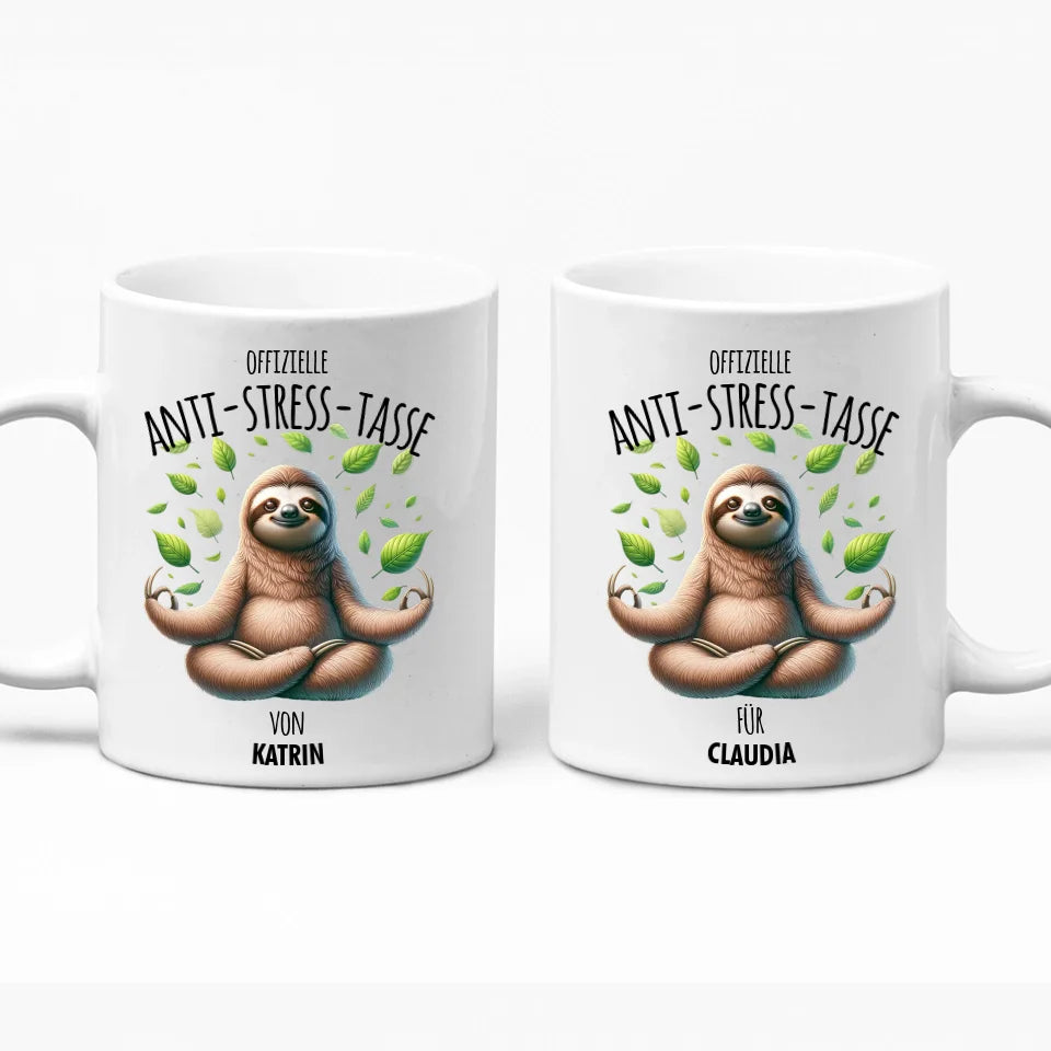 Offizielle Anti-Stress-Tasse - personalisierbar mit Name und chilligen Tieren - Geschenk Edition mit 2 Namen (von & für)