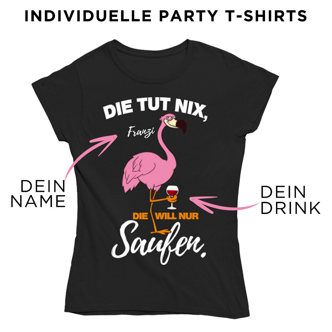 Flamingo Party-T-Shirts mit eurem Namen & Lieblingsdrinks