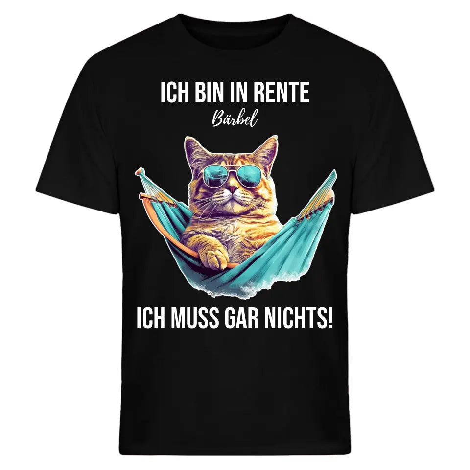 Ich bin in Rente - Ich muss gar nichts - Spruch - Katze T-Shirt oder Hoodie - personalisierbar mit Name