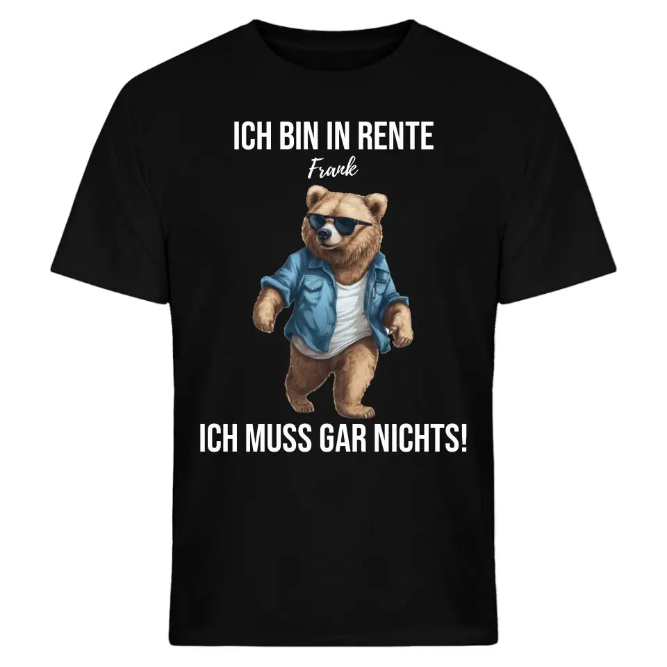 Ich bin in Rente - Ich muss gar nichts - Spruch - Bär T-Shirt oder Hoodie - personalisierbar mit Name