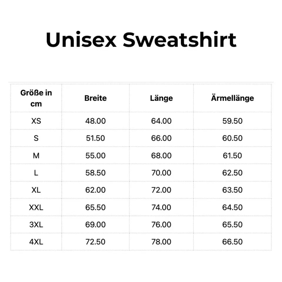 Da alle unsere Produkte personalisierte Ware sind, sind sie vom Wiedergaberecht ausgeschlossen. Auf unseren Produktseiten findest du eine Größentabelle, die dir bei der Auswahl der richtigen Größe helfen sollte.